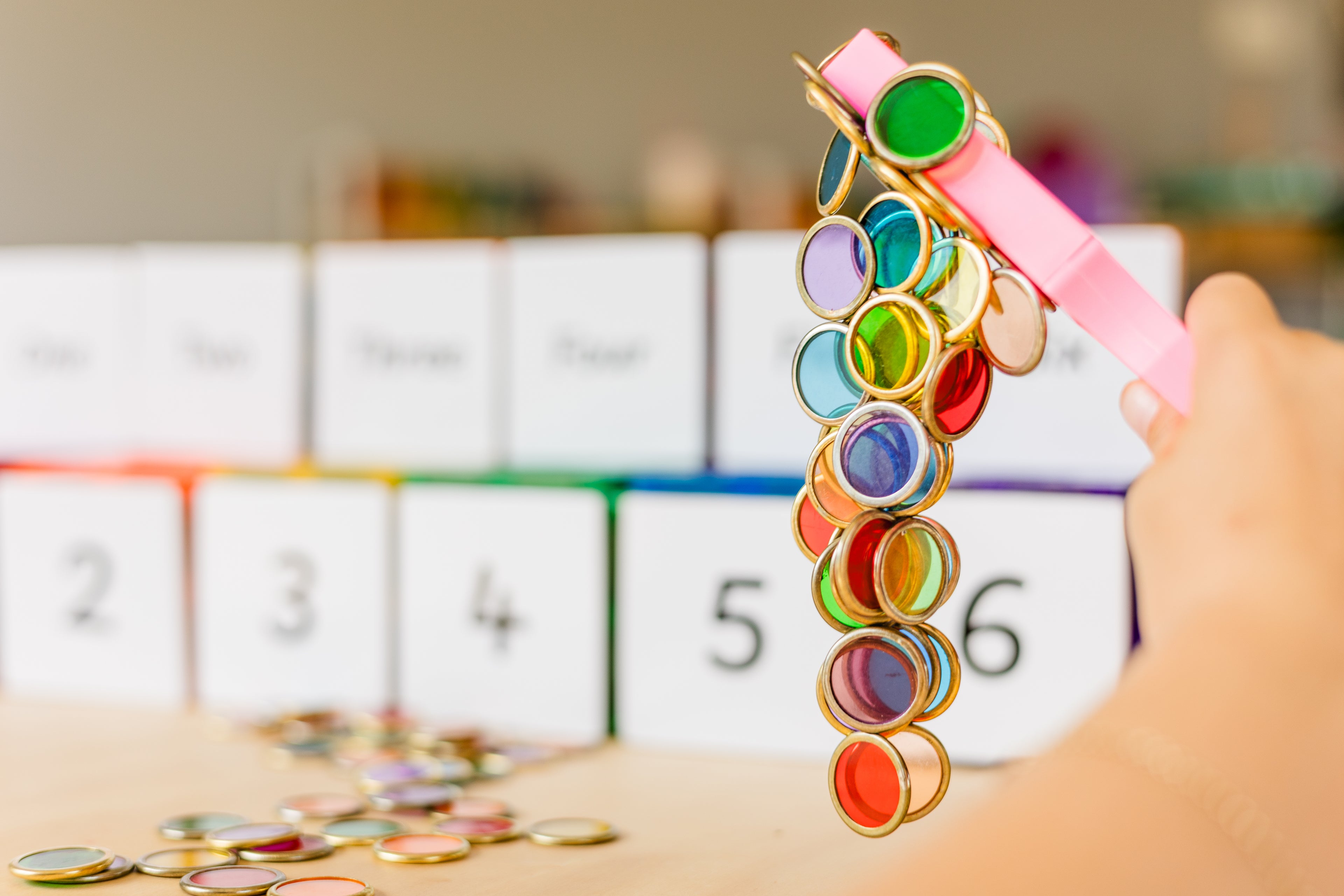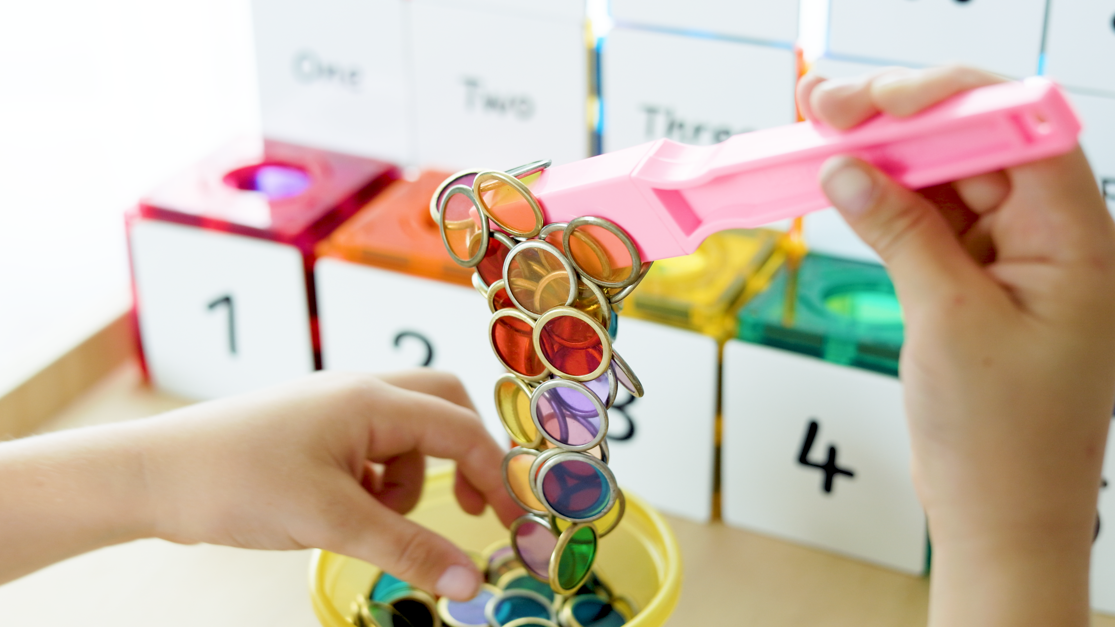 Each wand contains a permanent magnet folded into the end of a brightly coloured plastic handle which is durable and easy to clean.
