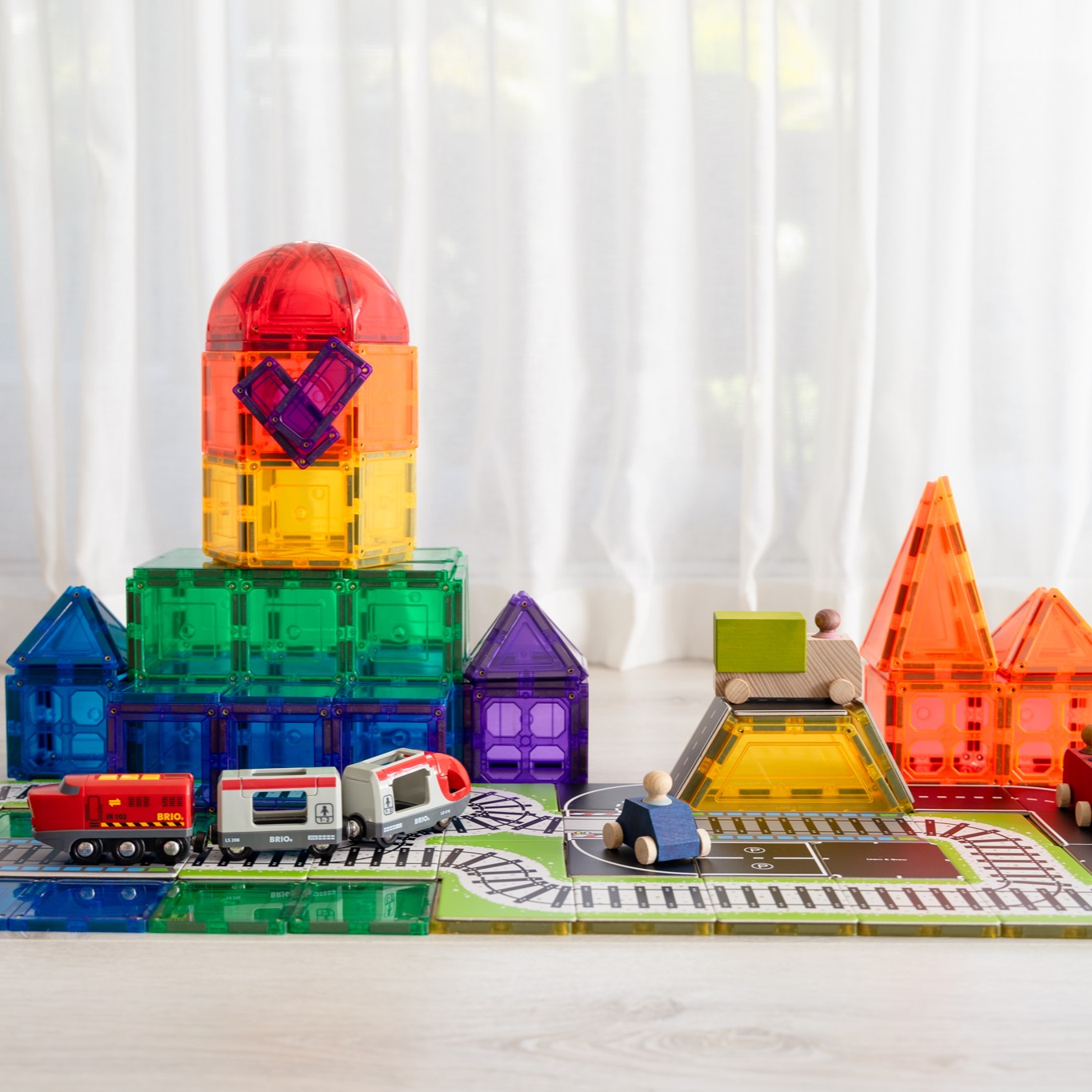 Met ons innovatieve grote vierkante ontwerp, dat extra sterke magneten doorheen bevat, zorgt elke tegel voor de stabiliteit van hoge gebouwen en structuren, waardoor frustratie voor jonge bouwers wordt geëlimineerd.